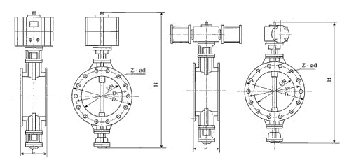 TD641W氣動通風蝶閥主要外形連接尺寸 單位:mm