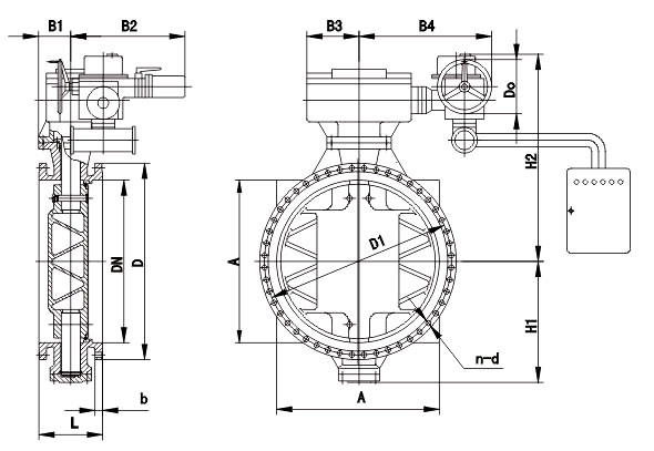 DV942X/H電動調速電動蝶閥外形主要外形連接尺寸 單位:mm